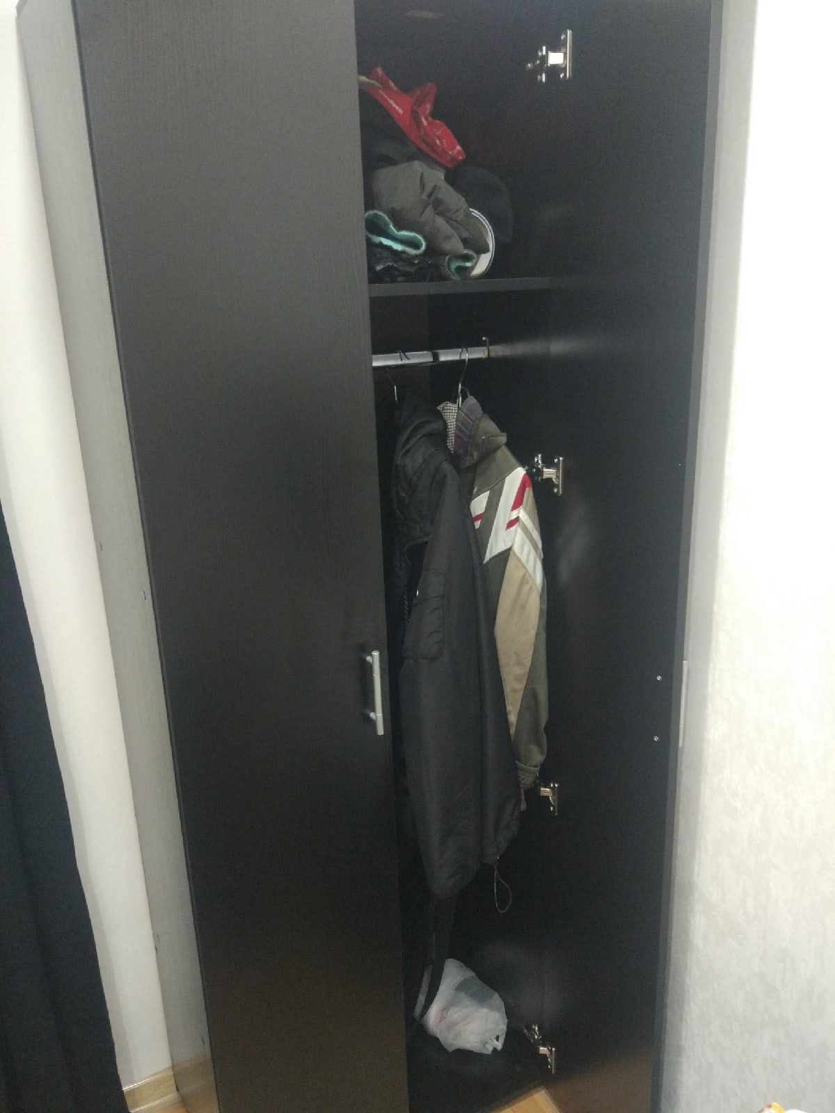 Искал себе узкий чёрный шкаф. но в интернете не смог найти нужный себе вариантНаткнулся на данный сайт и на данный шкаф, попримерялся, посмотрел какие размеры, в какие цвета его можно перекрасить, выбрал нужное, заказал.пока дожидался, мне несколько раз звонили, сделать поправки по вешалке для вещей, по размерам полок и т.двсе обсудили и договорились.Когда я его получил, я собрал его в тот же вечер, очень обрадовался что он узкий (себе я хотел узкий. я думаю его можно сделать и широким и низким. каким хотите). так как комната небольшая он отлично вписался. ничего лишнего в дизайне (также он крепкий т.к некоторые "полки" являются несущими ). за полгода ничего не отвалилось, крепко стоит в углуВ общем: шкаф порадовал, в комнате много места, внутри много полок. качественноЗаказ 00000469780