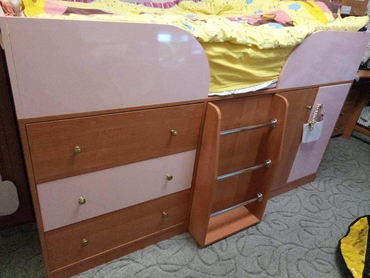 При покупке цена показалась немного выше чем подобные аналоги, но жене понравился именно этот цвет и дизайн. При сборке понял чем обоснована цена, фактически собирается комод и шкаф со своей крышей и задней стенкой из полноценной ДСП, потом собирается вместе с промежутком для лестницы, сверху идёт уже кровать. На более дешевых аналогах кровать является и крышкой для шкафа и комода и задняя стенка – фальш-панель. из минусов – на фасаде пара отверстий не совпали, пришлось просверлить.