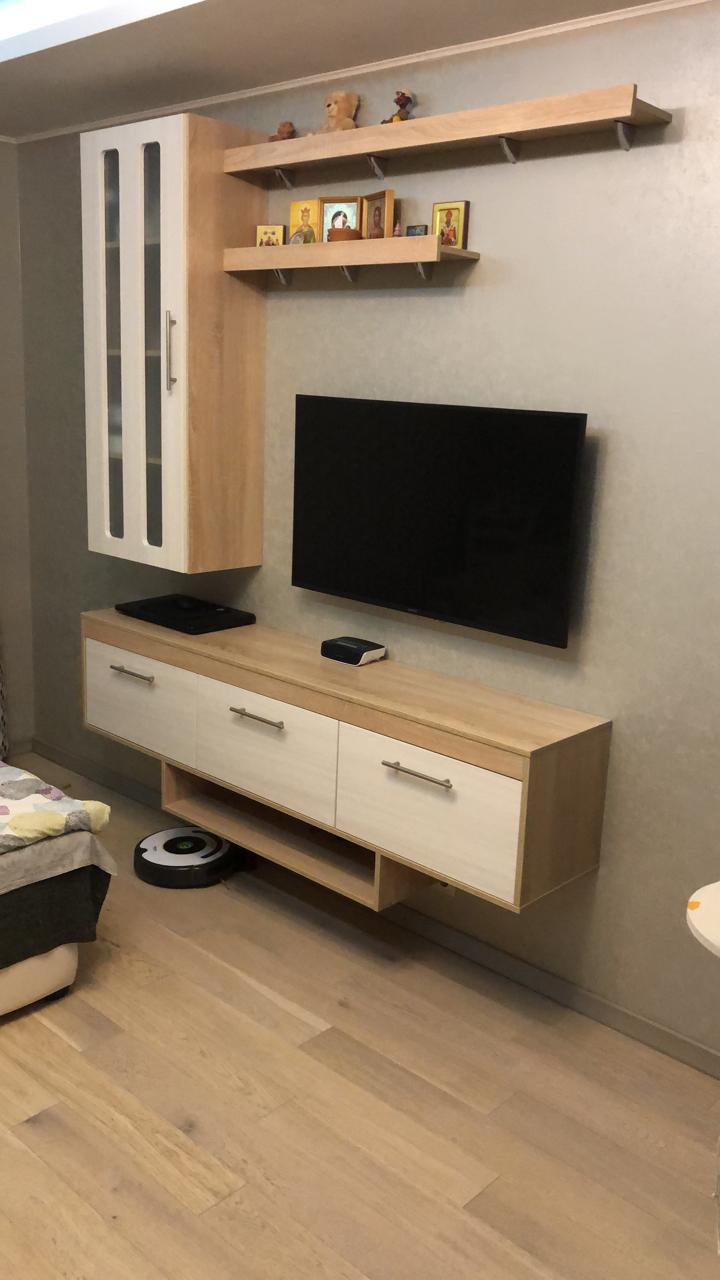 Очень довольны покупкой. Пользуемся уже 4 месяца, нареканий по качеству на данный момент нет. Очень понравилось то, что можно выбрать практически любой цвет для изготовления мебели, фурнитуру подешевле или дорогую, вообщем, весь набор для тв можно полностью изготовить под свои потребности! Цена вполне доступная. По крайней мере, на других сайтах других производителей мы не нашли то, что нас удовлетворяло по внешним данным и цене! Очень рекомендую данный набор и продавца! P.S. Собирается достаточно сложно, поэтому рекомендую вызывать сборщика из фирмы-партнера, контакты предоставляют при доставке мебели. Нам собирал именно он, все досконально вымеряется, и видно было, что собирает он данный набор не первый раз, но занятие это трудоемкое, сами бы мы не справились.