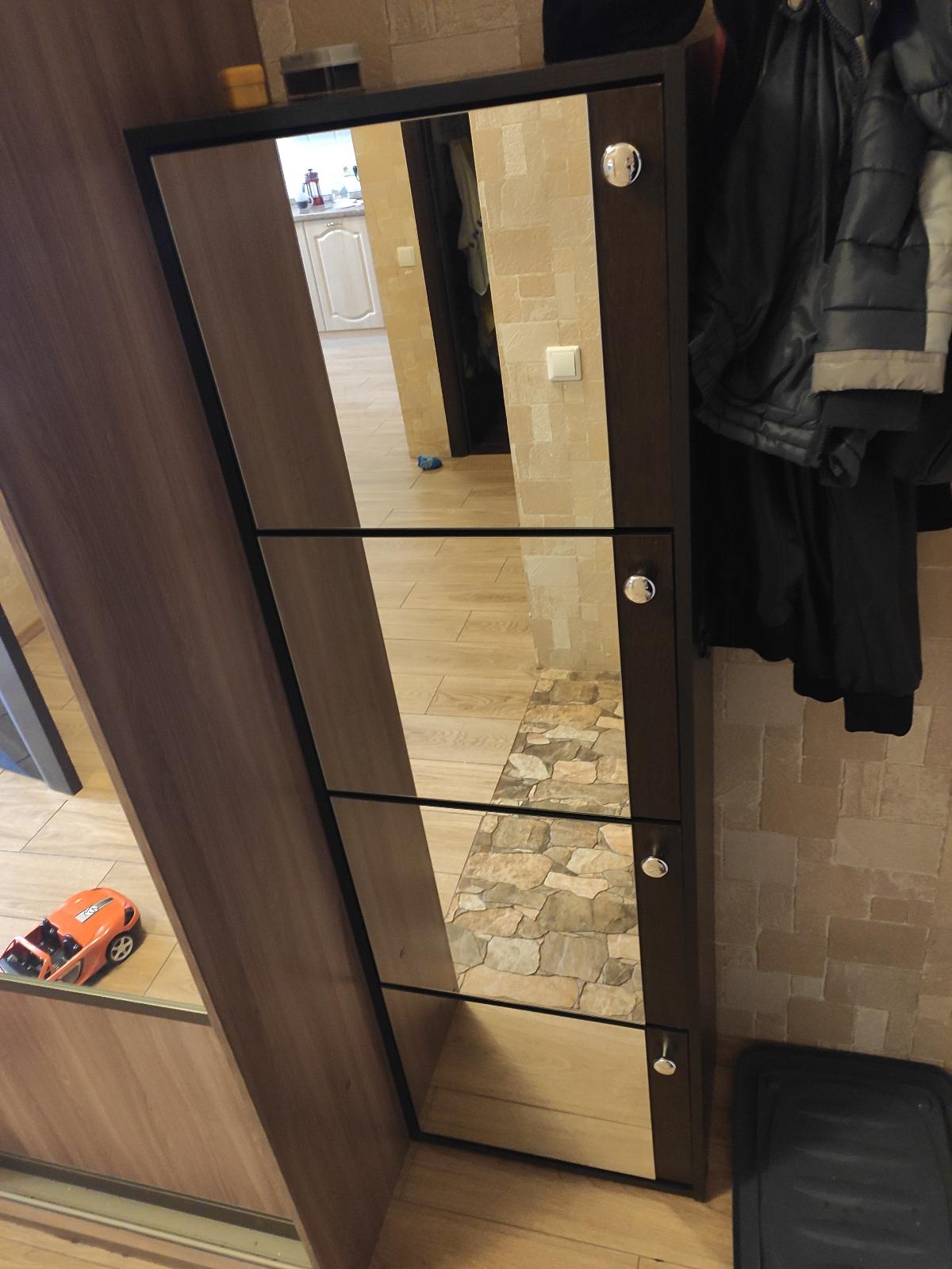 Спасибо большое, очень хорошая обувница, вместительная, красивая, по началу возникли проблемы с эксплуатацией, так как сборщик Владимир не правильно подобрал саморезы, в связи с чем я усомнилась в своем выборе и не знала как решить проблему выскакивающих дверок, сегодня приехал второй сборщик Радмил, очень квалифицированный специалист, все исправил, отдельное большое спасибо ему!) Теперь мы с удовольствием пользуемся обувницей,она идеально вписалась в интерьер )