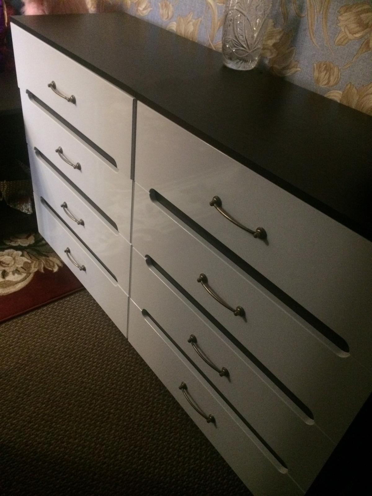 Заказывали такой комод на дачу в спальню, в белом цвете- глянец, по своим размерам. Упаковано было хорошо, дефектов нет, собрали самостоятельно - интуитивно понятно, (зазоры кое-где - результат нашей сборки, исправим)) Качеством вполне довольны.  Внешне нравится
