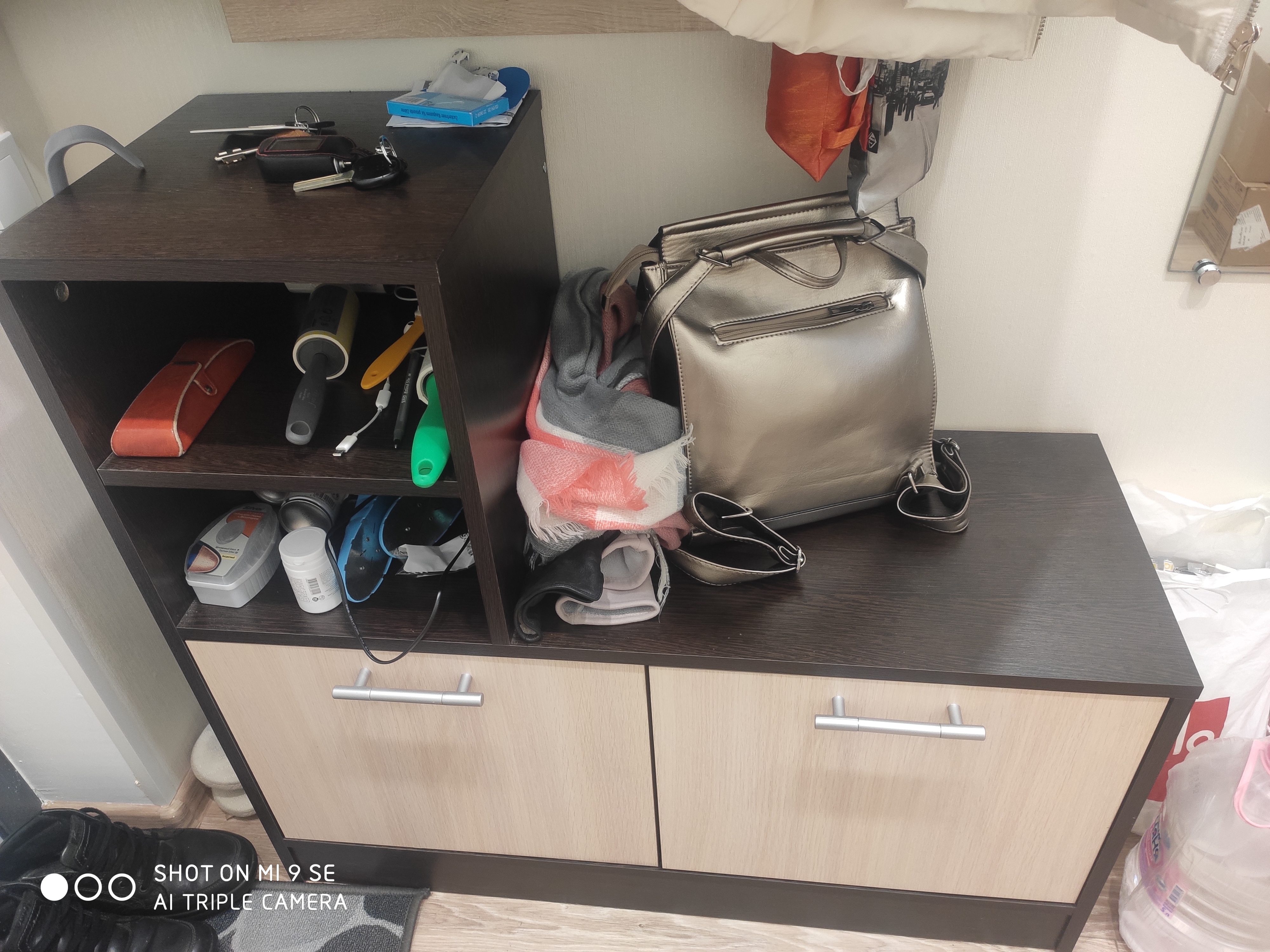 Обувница очень функциональная. Вмещается 4 пары низкой обуви в каждый отсек. Высокую обувь приходится складывать лежа. Удобные полочки для мелочевки. И даже есть место чтобы поставить сумки. Идеальное решение для маленькой прихожей. Так же порадовала цена. Дешевле такое качество не купить. Заказ 00000299225 от 27.10.2019